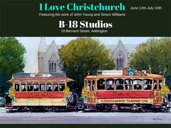 B-18 Studios are looking forward to giving back to the community, with exhibition profits donated to charitable organisations. Together with Min Kim the owner of The B.R.Y.C.E Gallery, B-18 Studios are currently holding the exhibition “I Love Christchurch” with artists such as John Young, Simon Willems, Sue Currie and Min Kim.